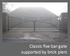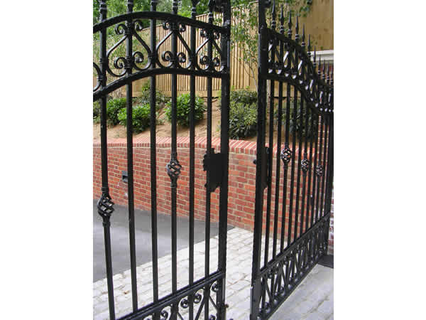Manufactured as single or double swing leafs, hinged from various physical supports such as wrought iron posts, brick piers or wrought iron decorative columns. All of our gates are bespoke and made to order.